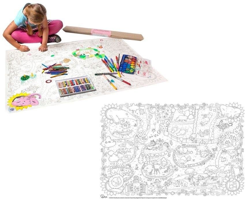 Kolorowanka w rozmiarze 120cm x 80cm. Ogromna powierzchnia do kolorowania kredkami, flamastrami i farbami. Wzmocniony spód arkusza zabezpiecza przed przesiąkaniem farb. Kolorowanka wykonana jest z grubego kartonu, który można bez końca rozkładać i zwijać!Kolorowanki rozwijają sprawność manualną -...