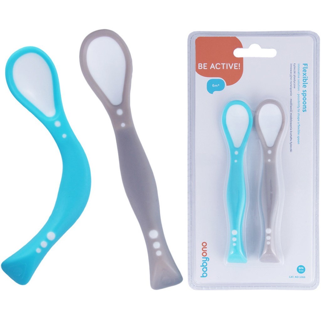 Dětská flexibilní lžička Baby Ono 2ks šedá, tyrkysová
