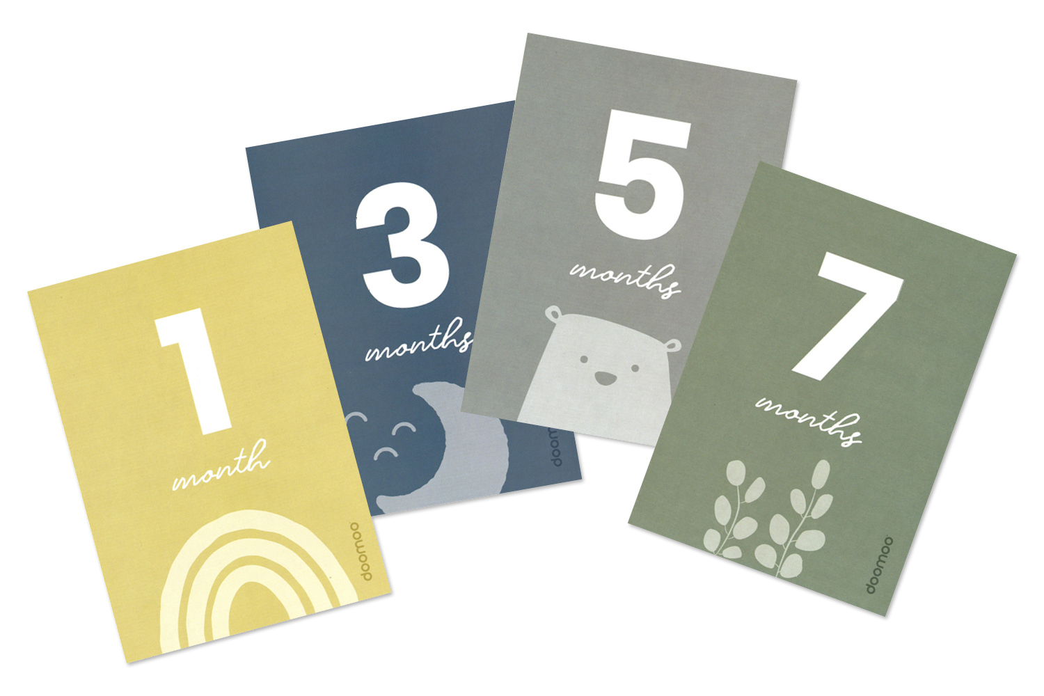 Milníkové karty od 1 do 12 měsíců, v jednoduchém čistém designu napomohou