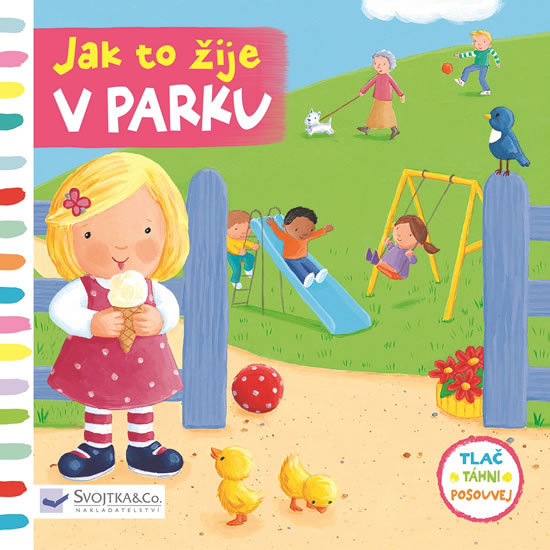Leporelo je určeno pro děti od jednoho roku. Má pevné stránky s posuvnými a otočnými prvky. Zjisti, jak to žije v parku, a procvič si svoji jemnou motoriku. prečítať celé