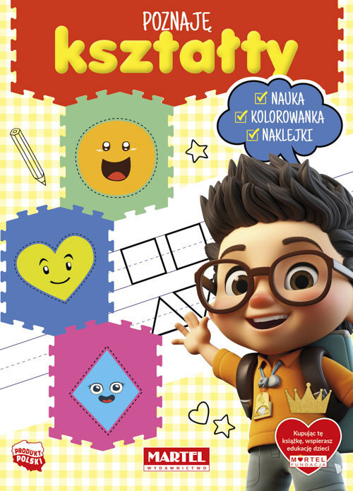 Kolorowanka z naklejkami „Poznaję kształty” bawi i uczy jednocześnie. Odkryj świat kształtów: koła, kwadratu, trójkąta i wiele innych. Proste i wesołe ćwiczenia pomogą maluchom rozwinąć zdolności manualne i wyobraźnię. Na każdej stronie jest nowe wyzwanie, które zainspiruje dziecko nie tylko do eksperymentowania z kolorami, ale i twórczego myślenia.