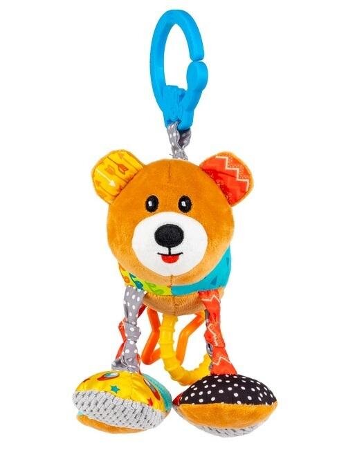 Kompaktowa zabawka sprawdzi się świetnie zarówno w domowym zaciszu, jak i w podróży! Miś, którego futerko tworzą materiały o zróżnicowanych kolorach, wzorach oraz fakturach, to pomysł na wesołe wprowadzenie do świata bodźców wzrokowych i dotykowych. Do zabawki doczepione są zawieszki w kształcie...