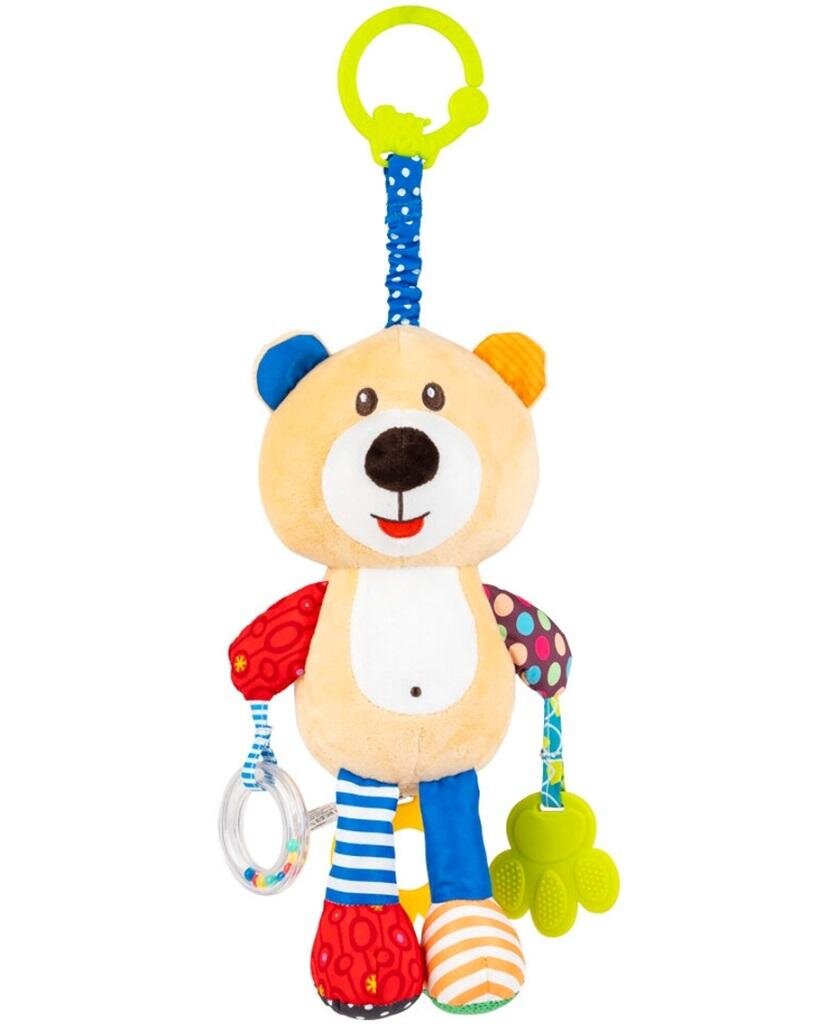 Kolorowy misiek w marynarskich kolorach zabawi malucha na wiele sposobów. Zabawka posiada grzechotkę i dwa miękkie gryzaki, które przyniosą ulgę obolałym dziąsłom ząbkującego bobasa. Jeden z gryzaków kwiatek, doszyty w miejscu misiowego ogonka, uruchamia dodatkowo melodię. Wystarczy go...