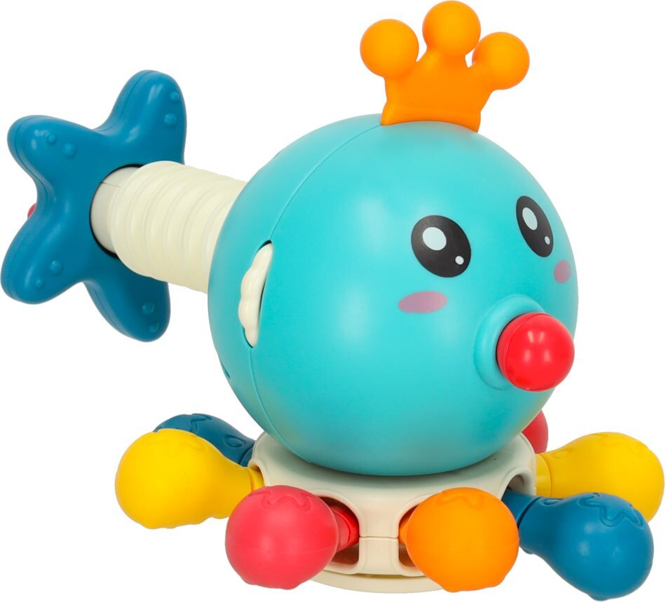 Modrá chobotnice je multifunkční hračka, která nabízí 10 různých způsobů, jak si hrát. Interaktivní prvky, jako jsou otáčející se kolečka, vytahovací část a měkké části, poskytují senzorický zážitek pro malé děti. Bohatství textur a barev stimuluje smysl zraku a hmatu, podporuje rozvoj...