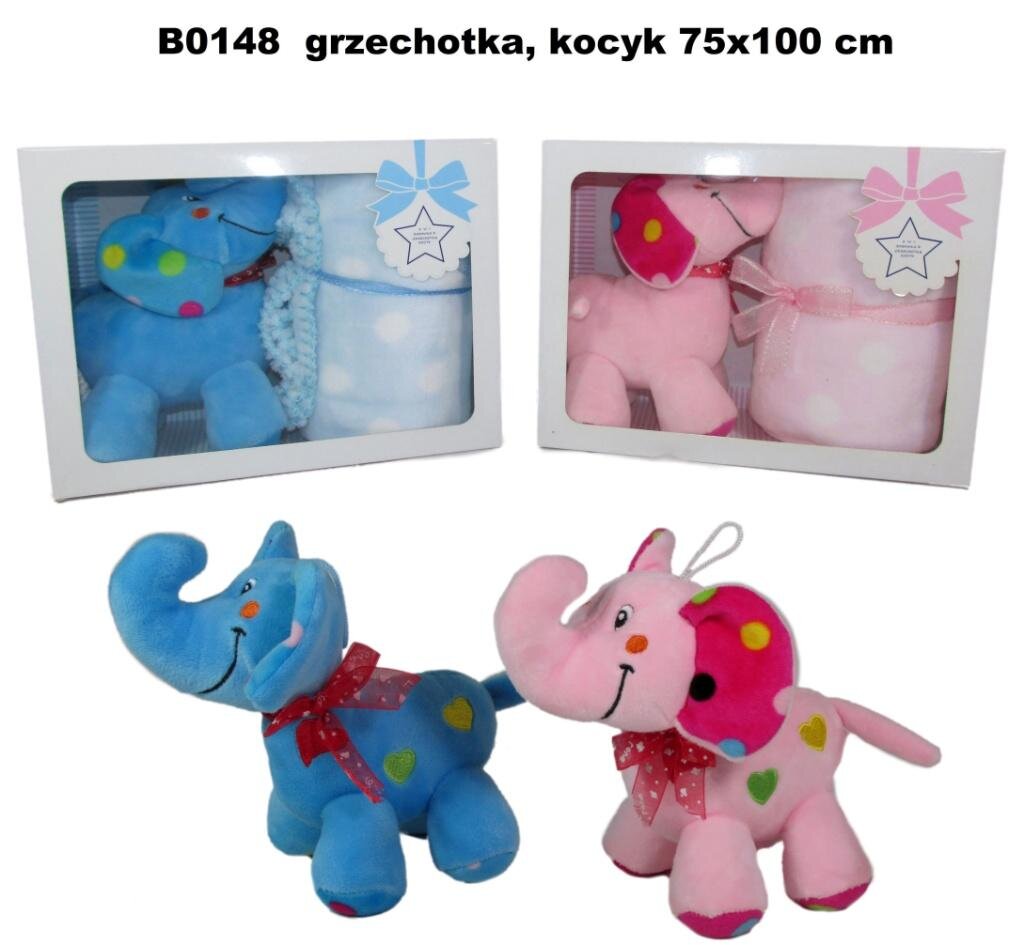 Słonik z grzechotką i kocykiem 75x100cm MIX