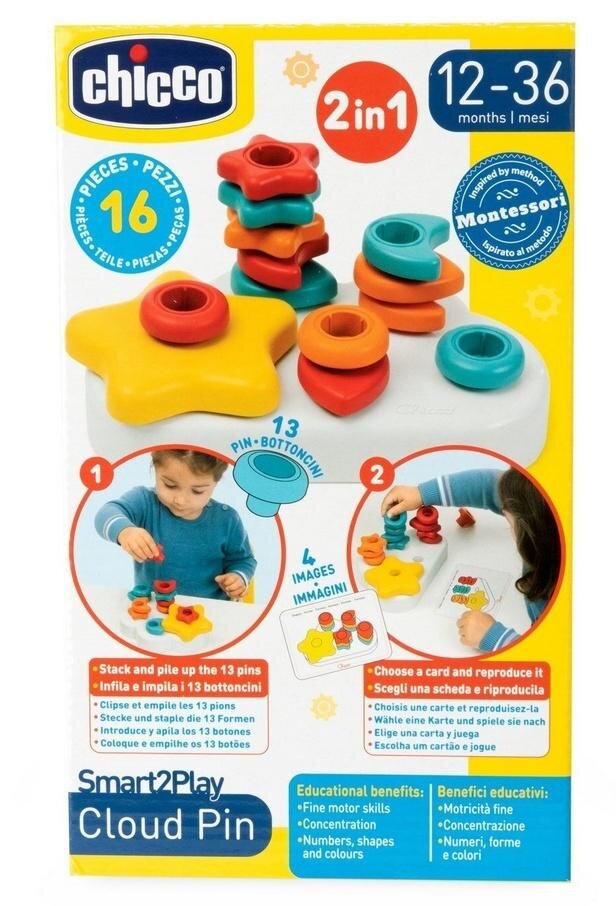 Chmurkowe kolorowe wpinkiGrupa wiekowa: 12-36 miesięcyZabawka edukacyjna, która rozwija kreatywność i logiczne myślenie malucha! CHMURKOWE KOLOROWE WPINKI to wyjątkowy zestaw do układania kolorowych elementów w formie wpinek na chmurce. Dzięki różnym kształtom i kolorom dziecko może bawić się na...