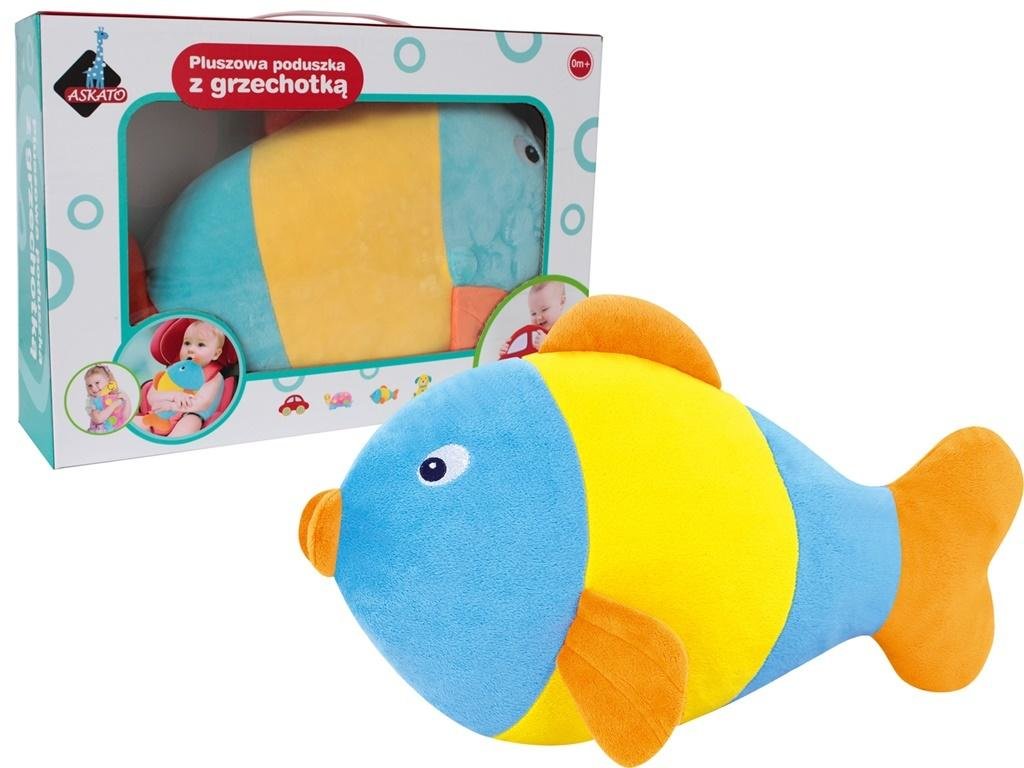 Miękka, pluszowa poduszeczka, która może służyć jako poduszka lub pierwsza przytulanka malucha. Oprócz wrażeń dotykowych, które są niezwykle istotne przy rozwoju integracji sensorycznej, poduszka ma wszystą grzechotkę, która stymuluje wrażenia słuchowe. Zabawka bez ograniczeń wiekowych.