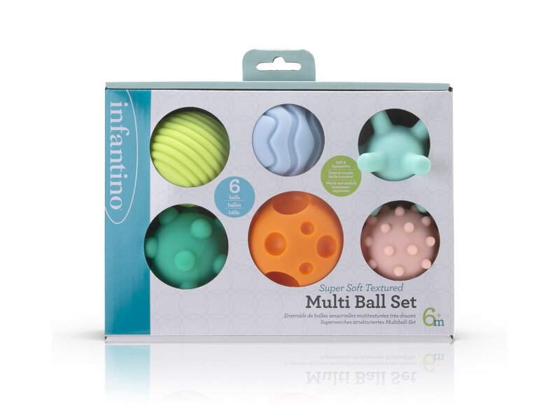 - Súčasťou balenia 6 kusov mäkkých guličiek s rôznymi textúrami.
