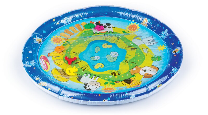 Wesołe dryfowanie bo bajkowym stawie! Duża mata zapewni maluchowi przestrzeń do zabawy w falowanie i obserwowanie kolorowych kształtów, pływających w jej wnętrzu. Krawędź zawiera zawór do nadmuchania brzegu maty, natomiast spód maty wyposażony jest w zawór do napełniania wodą. Kiedy dziecko...
