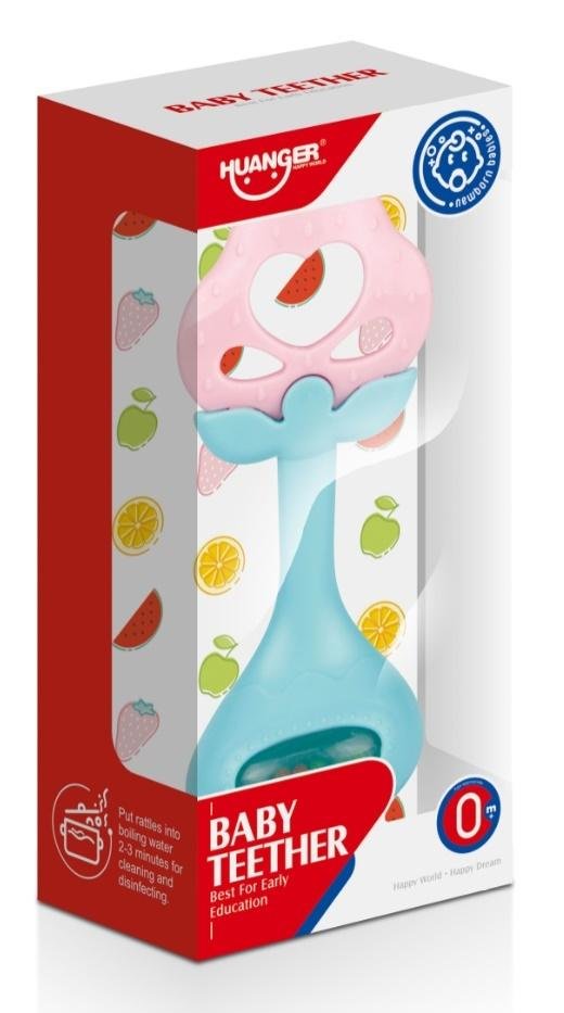 Kolorowy gryzak w kształcie truskawki z grzechotką o wysokości 14 cm. prečítať celé