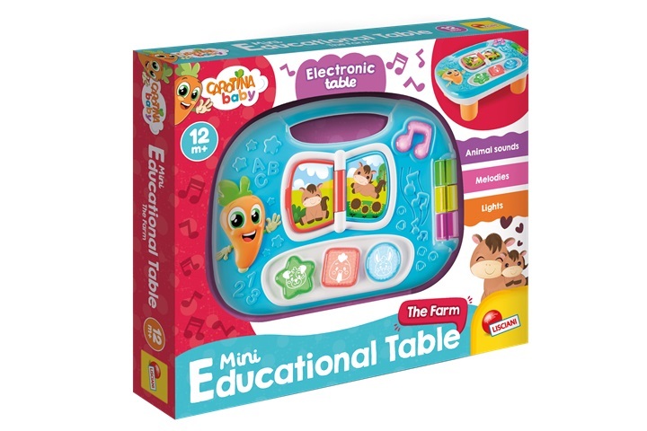 To pełen radości stolik, który oferuje wiele zabawnych aktywności do wykonania z Carotiną. Dziecko będzie miało okazję rozwijać swoje zmysły, bawiąc się i odkrywając świat dźwięków, kolorów i melodii.