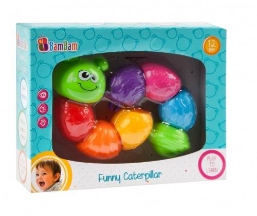 ZABAWNA GĄSIENICA to zabawka edukacyjna dedykowana dla dziecka od 12 m-ca. Złożona z 8 wielobarwnych i o zróżnicowanej fakturze elementów umożliwia dzieciom łączenie ich na wiele sposobów. Zwieńczeniem układanki jest zabawna kula o kształcie głowy usmiechniętej gąsienicy. Zabawa poszczególnymi...