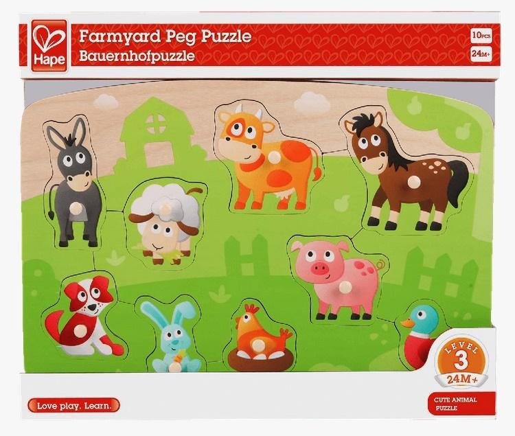 Farma, układanka z kołkami marki Hape to zabawka dla dzieci ćwicząca zdolności manualne i spostrzegawczość. Jeśli Twoje dziecko lubi zwierzęta, dzięki temu zestawowi może zgadywać różnicę pomiędzy nimi i dowiedzieć się, gdzie mieszkają. Zabawka została wykonana z wysokiej jakości, naturalnych i bezpiecznych materiałów.