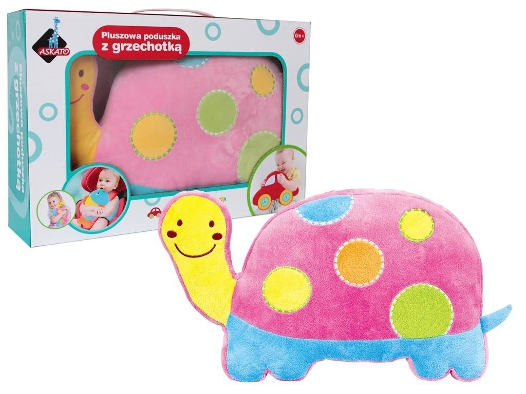 Miękka, pluszowa poduszeczka, która może służyć jako poduszka lub pierwsza przytulanka malucha. Oprócz wrażeń dotykowych, które są niezwykle istotne przy rozwoju integracji sensorycznej, poduszka ma wszystą grzechotkę, która stymuluje wrażenia słuchowe. Zabawka bez ograniczeń wiekowych.