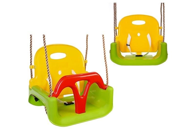 HUŚTAWKA DO ZABAWY W POMIESZCZENIACH I NA ZEWNĄTRZ, POSIADA 3 TRYBY MODYFIKACJI: DLA DZIECI DO 3 LAT Z OPARCIEM, POPRZECZKĄ / ZABEZPIECZENIEM, PASEM MOCUJĄCYM, W WIEKU 3 - 5 LAT Z SAMYM OPARCIEM, OD 5 LAT Z SAMYM SIEDZISKIEM, DŁUGOŚĆ LIN MOCUJĄCYCH OK. 140 CM., MAKSYMALNE OBCIĄŻENIE 70 KG., WYM. HUŚTAWKI: 42 X 38 X 34 CM., WYM. OPK: 60 X 60 X 36 CM., PAKOWANE W FOLIĘ,