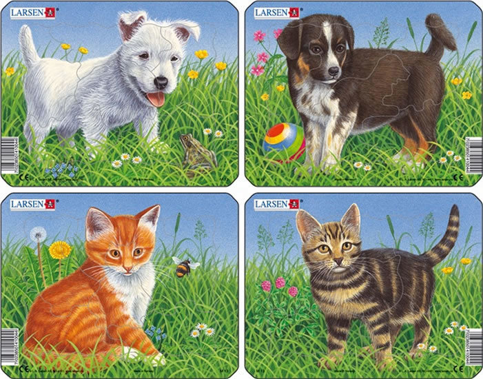 Puzzle pro nejmenší se 6 dílky! Obrázky - kotě zrzavé, kotě mourované, štěně bílé a tmavé. 4 druhy - náhodný výběr prečítať celé