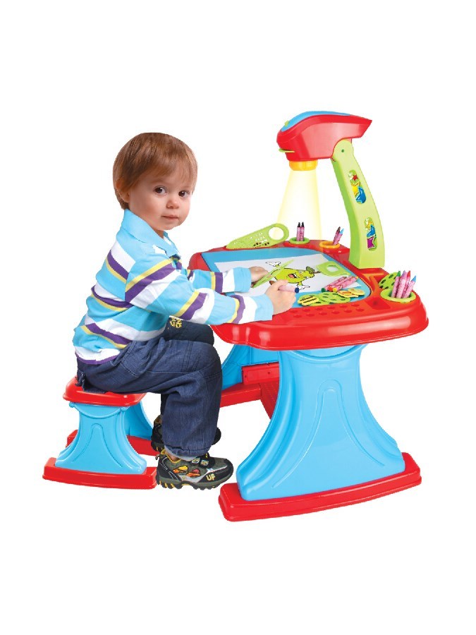 Dětská oboustranná tabule s projektorem a židličkou Baby Mix + příslušenství 93 ks