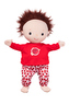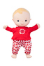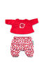 Pohodlné a módní červené pyžámko je určené pro panenky velikosti 36 cm. Na přední straně trička je aplikace ptáčka Robina. Pyžámko lze panenkám jednoduše obléknout a opět svléknout. Děti si tak rozvíjí jemnou motoriku a učí se o někoho starat.