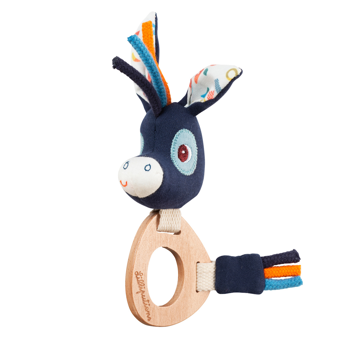 Roztomilá přátelská tvář oslíka Ignáce, jemný veselý zvuk a dřevěný kroužek dělají z tohoto chrastítka a zároveň kousátka zábavný zážitek pro miminka od 3 měsíců. Hračka je vyrobena z organické bavlny a přírodního dřeva. Výplň je 100% recyklovaný polyester. Textilní část hračky lze prát v pračce...