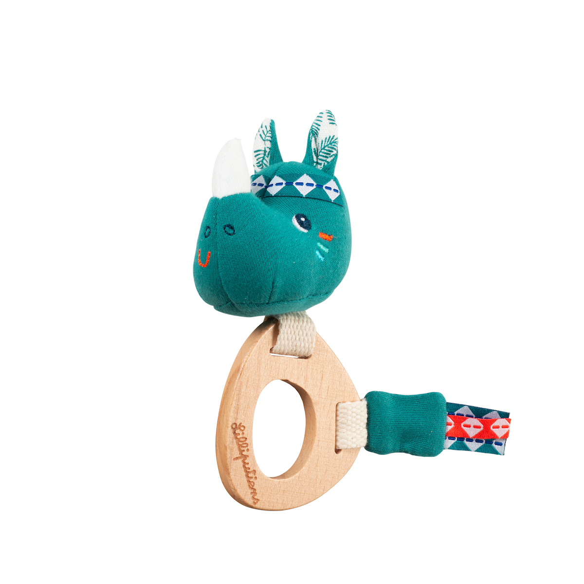 Roztomilá přátelská tvář nosorožce Máriuse, veselý zvuk a dřevěný kroužek dělají z tohoto chrastítka a zároveň kousátka zábavný zážitek pro miminka od 3 měsíců. Hračka je vyrobena z organické bavlny a zodpovědně získaného dřeva. Výplň je 100% recyklovaný polyester. Textilní část hračky lze prát v pračce na 30°C na jemný cyklus. Rozměry hračky jsou 11 x 3 x 13 cm.