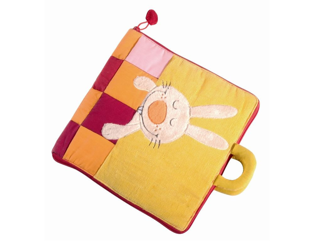 Krásná textilní knížka se spoustou aktivit a barev je ideální pro děti od 6 měsíců. Knížka je měkká a plná podnětů. Děti sledují malého králíčka během přípravy ke spánku. Večeře, koupel, oblékání pyžámka a samozřejmě objímání předtím, než se králíček zachumlá pod peřinu.