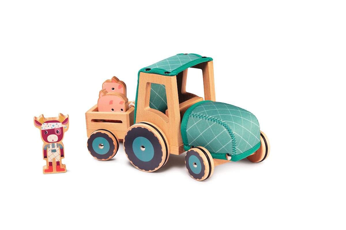 Krásný dřevěný traktor je ideální dárek pro kluky od 2 let. Farmářka Rosalie hospodaří na farmě a je stále v jednom kole. Prasátka šťastně rostou a kravička je přepravuje v přívěsu za traktorem. Jedou s ní na pole, kde se proběhnou. S tímto traktorem si děti mohou vymýšlet ty nejbláznivější...