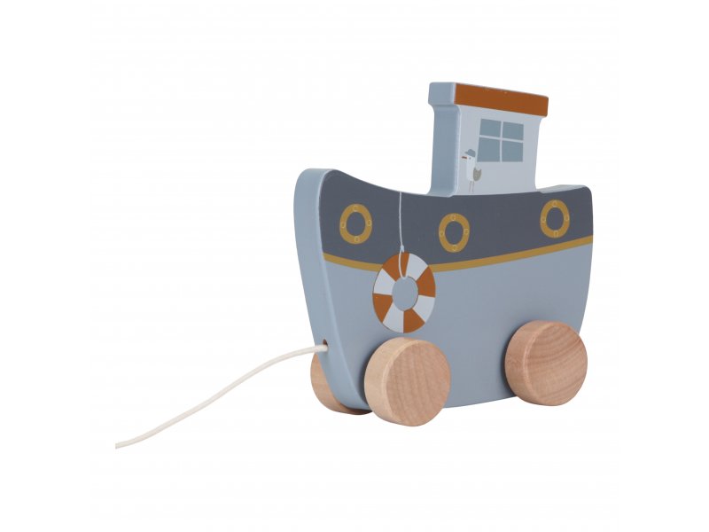 Elegantná loďka na kolieskach v krásnom drevenom prevedení vybavená šnúrkou umožňuje dieťaťu jednoducho ju ťahať za sebou. Podporuje rozvoj motoriky, koordinácie a zároveň podnecuje predstavivosť a zábavu pri hre. Vďaka svojmu námorníckemu dizajnu prináša radosť a navodzuje atmosféru prímorského dobrodružstva.