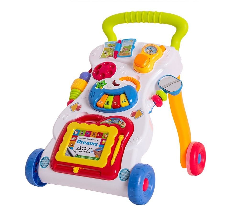 Interaktywny pchacz, który wyposażony jest w panel edukacyjny, tworzący prawdziwe mobilne centrum zabaw z dźwiękami i światełkiem.Pchacz to miejsce do zabawy także dla dziecka, które jeszcze nie chodzi i może bawić się w pozycji siedzącej.Pchacz pomaga przy stawianiu pierwyszch kroków dziecka,...