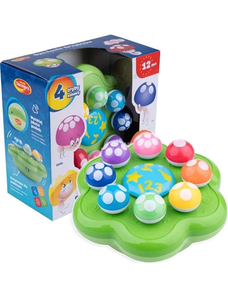 Kwiatek na kołyszącej podstawie zabawi na 4 różne sposoby! Zabawka posiada 4 tryby działania: cyfry, muzyka, kolory i gry. Aby wybrać konkretny tryb należy nacisnąć na niebieskie kółko, znajdujące się na środku zabawki. W trybie cyfry, zadaniem malucha będzie liczenie kropek, znajdujących się na...