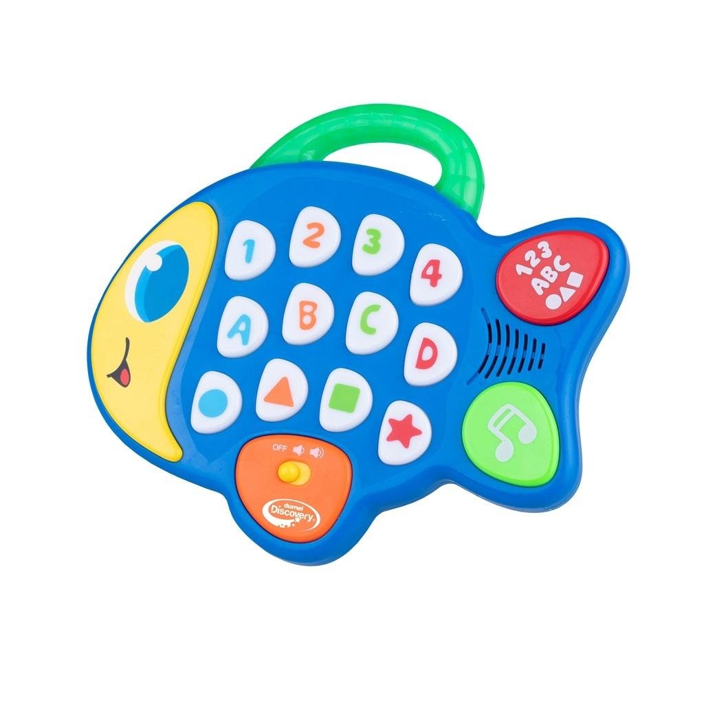 Wesoła rybka zauroczy bobasa słodkim głosem i kolorowymi światełkami! Na rybim ogonku znajdziemy dwa przyciski, odpowiadające kolejno, za zmianę trybu zabawy (nazwy cyferek, litereki kształtów) oraz uruchamianie melodii i wesołych dźwięków. Praktyczny uchwyt ułatwi przenoszenie zabawki, a...