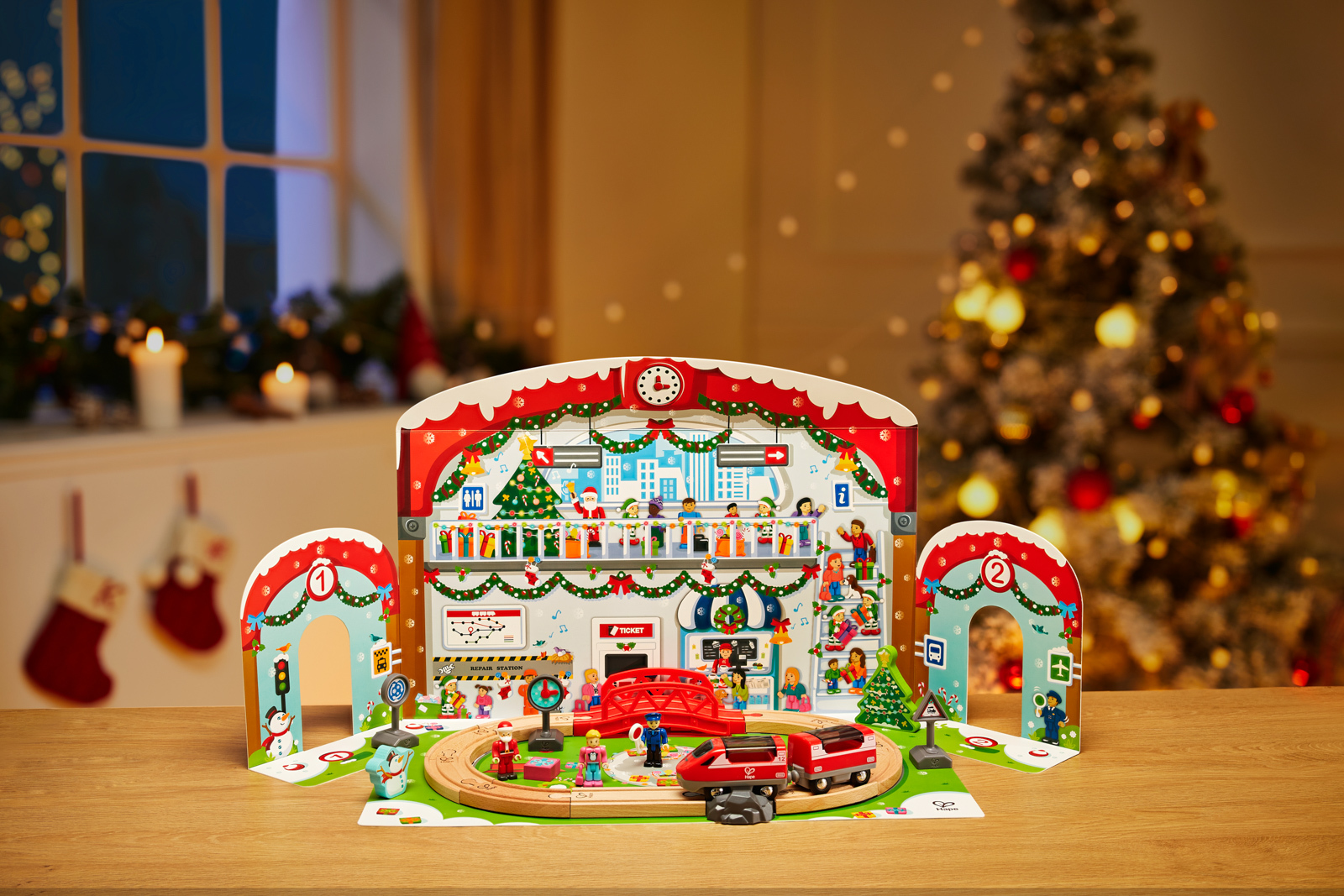 Pozor pozor! Příjezd na nástupiště tři: Santa Claus! Jeho sobi si letos mohou dát zasloužený odpočinek. Za 24 malými dvířky se skrývají dřevěné koleje, vláčky, vlakový personál a nejrůznější vánoční doplňky. Obal zároveň slouží jako atmosférická kulisa. Balení: 7x28,5x50,5cm. Věk: 3+