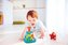 "Wirująca zabawa w podwodnej odsłonie! Ten wesoły bączek jest wypełniony rybkami i morskimi roślinkami. Im szybciej maluch będzie wciskał pomarańczowy tłok, tym szybciej będą się kręcić rybki. Nasadę bączka i tłok zdobią wypukłe wzory, idealne do eksplorowania małymi rączkami.