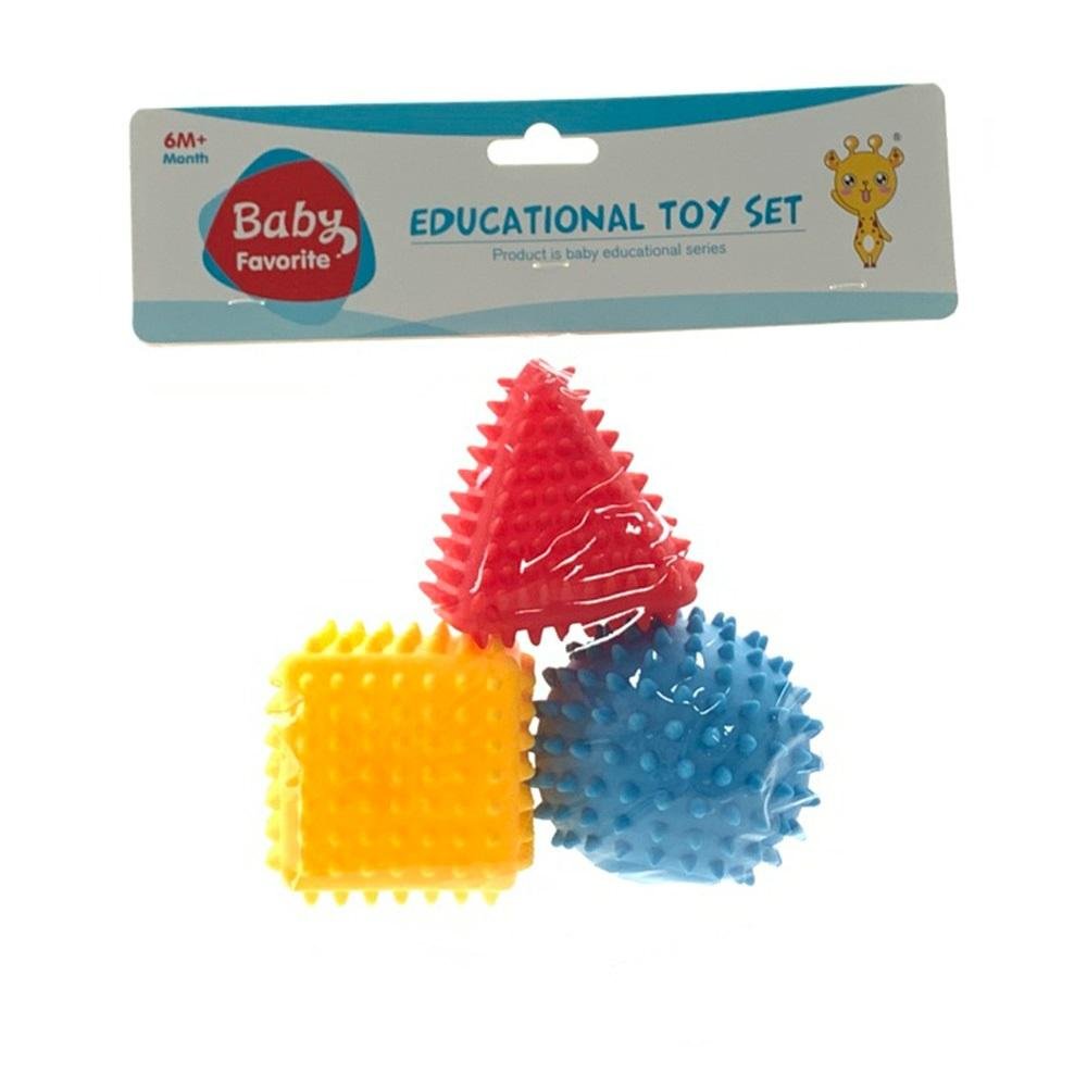 Zestaw trzech piłek sensorycznych w kształcie kuli, kwadratu i trójkąta. prečítať celé