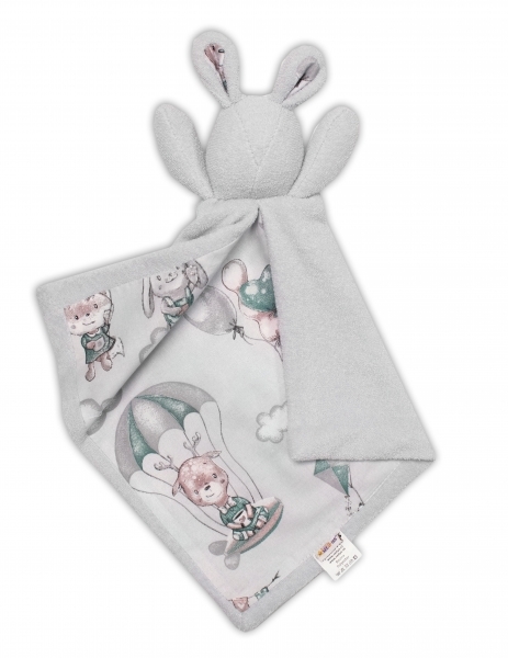 Baby Nellys Mazlík, přítulníček Zajíček, froté + bavlna, Létající zvířátka, zelená/šedá