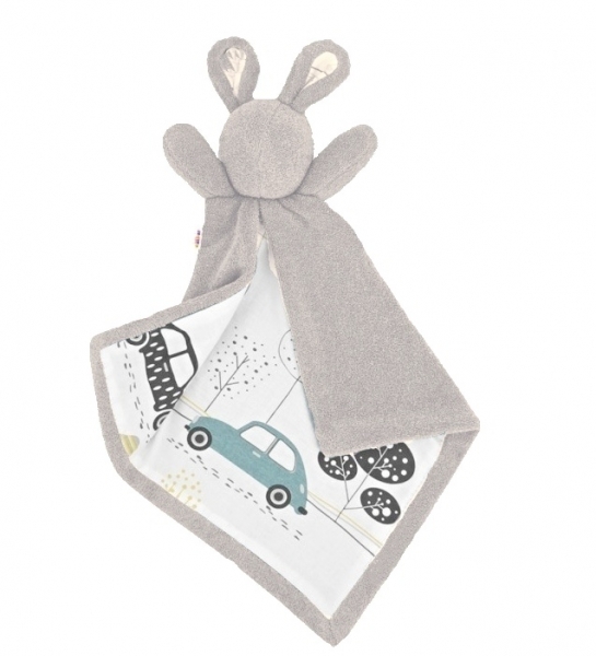 Baby Nellys Mazlík, přítulníček Zajíček, froté + bavlna, Auta v aleji - šedá