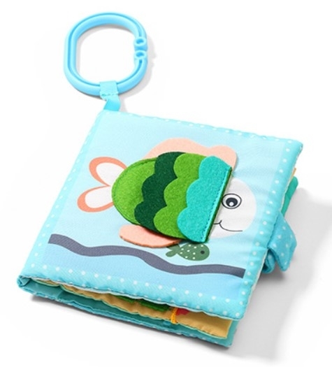 Senzorická knížka - SEA.Senzotická knížka Mořský svět odhalí vašemu dítěti fascinující podmořský svět. Stimuluje smyslový vývoj miminka od prvních dnů života. Různé materiály a textury stimulují hmat. Tkaniny, jako je plsť, jsou měkké a bezpečné. Zůstávají odolné i po intenzivní hře. Odnímatelný...