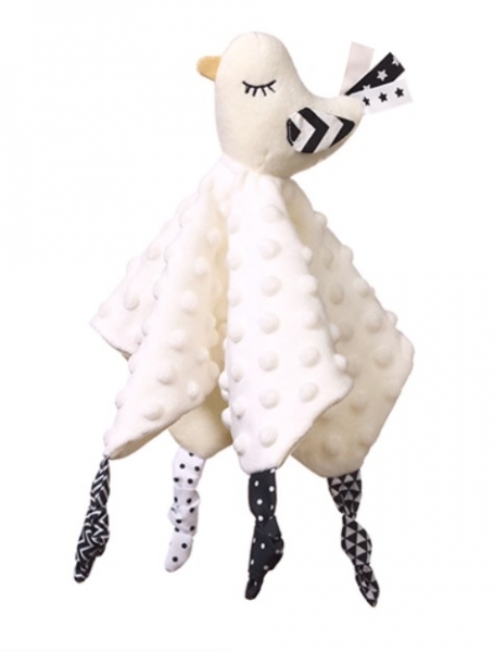 Přítulníček mazlíček/šustík, Bird.Little Birdie je funkční produkt dva v jednom: deka a plyšová hračka. Je to také vzdělávací hračka. Rozvíjí smysly miminka od prvních dnů života. Minky bavlněný materiál má texturu s drobnými cvočky, které stimulují hmat. Podobně měkké uzly nebo stuhy podporují...