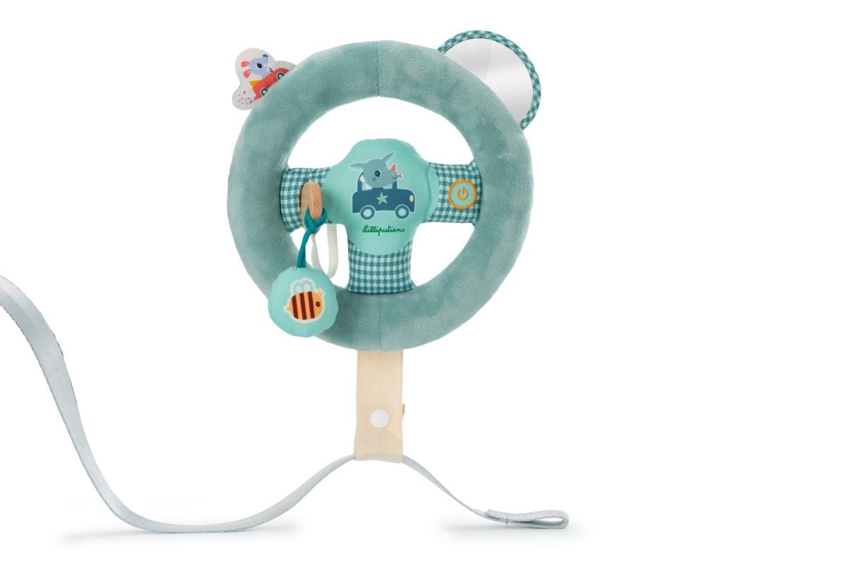 Zapněte si pás, usedněte za volant a nastartujte auto – je čas na dobrodružství! Nezapomeňte se podívat do zpětného zrcátka! Tento měkoučký textilní volant se připevňuje k bezpečnostnímu pásu auta a skvěle zabaví děti během cestování autem. Volant umožňuje dětem od 18 měsíců napodobovat činnost...