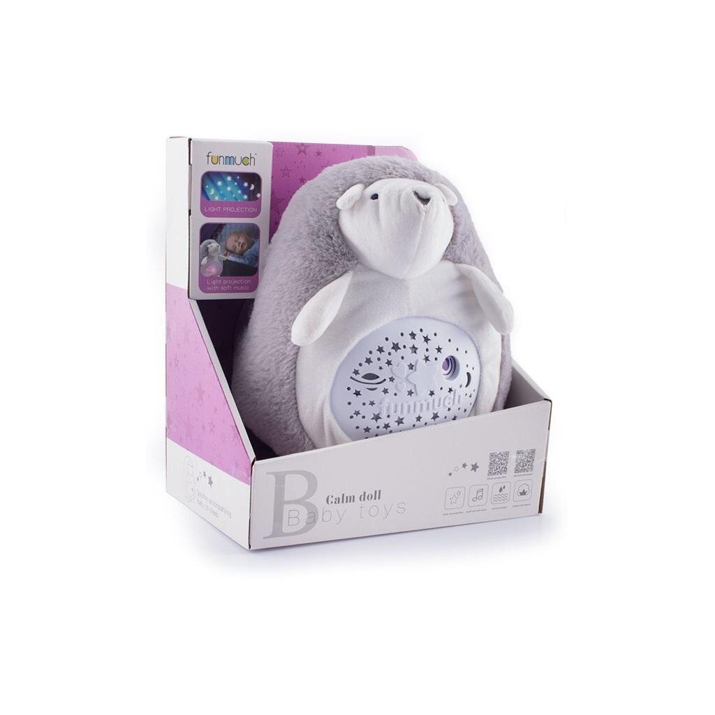 Pluszowa przytulanka Jeżyk z wbudowanym projektorem i pozytywką - maskotka usypiaczMiękki i miły w dotyku miś z ukrytym w brzuszku mechanizmem, z którego wydobywają się niesamowite efekty świetlne : zmieniająca kolor rozgwieżdżona poświata z delikatnym blaskiem bezpiecznym dla maluszka. Miś...