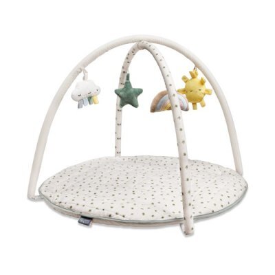 Hrací deka s hrazdičkou má měkkou prošívanou podložku, takže dítě může pohodlně ležet čtyři barevné pohyblivé figurky stimulují učení dítěte a jeho smysly hrazdičku lze odstranit látka je vyrobena z organické bavlny a lnu GOTS a certfikát Oeko-Tex vhodná pro použití od narození extra poutka na...