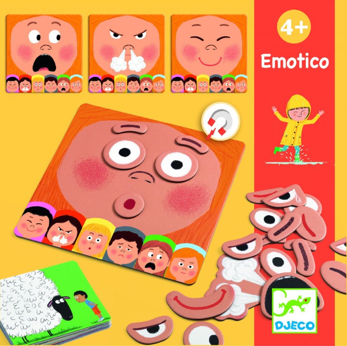 Emoce a pocity - pojmenujte emoce a rozpoznávejte jejich různé stupně. Hra, ve které můžete s dětmi procvičovat orientaci v emocích a rozvíjet emoční inteligenci. Díky výrazným obličejům, které lze na desce vytvářet stále znovu. Obsah balení : podkladová deska, 29 dílků části obličeje, 6 barevných žetonů, 24 karet s předlohami.