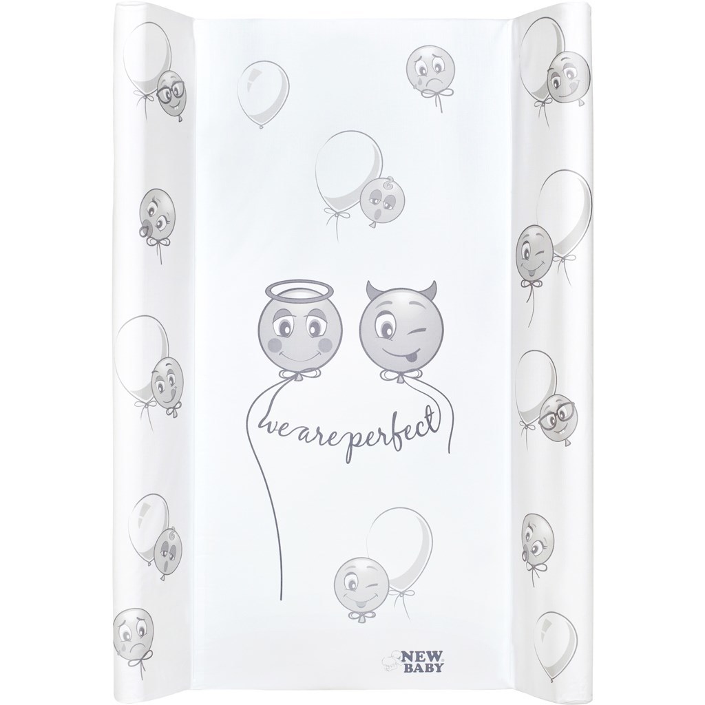 Praktická tvarovaná přebalovací podložka New Baby Emotions z nepromokavého, plastového materiálu s obrázky smajlíků, vyjadřujících různé emoce. Podložka má vyvýšené boční strany a lze jí použít na komodě či jiném místě k přebalování. Rozměr: cca 70x50 cm, tloušťka cca 2 cm, výška hran 8 cm.
