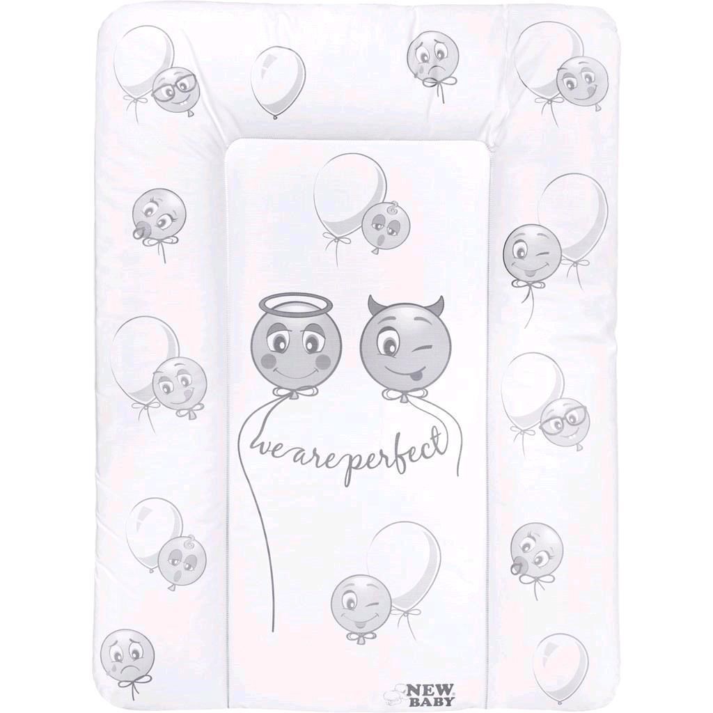 Praktická tvarovaná přebalovací podložka s moderním dizajnem New Baby Emotions z nepromokavého, plastového materiálu s obrázky smajlíků, vyjadřujících různé emoce. Podložka má vyvýšené boční strany a lze jí použít na komodě či jiném místě k přebalování. Rozměr: cca 70x50 cm, tloušťka cca 4 cm.
