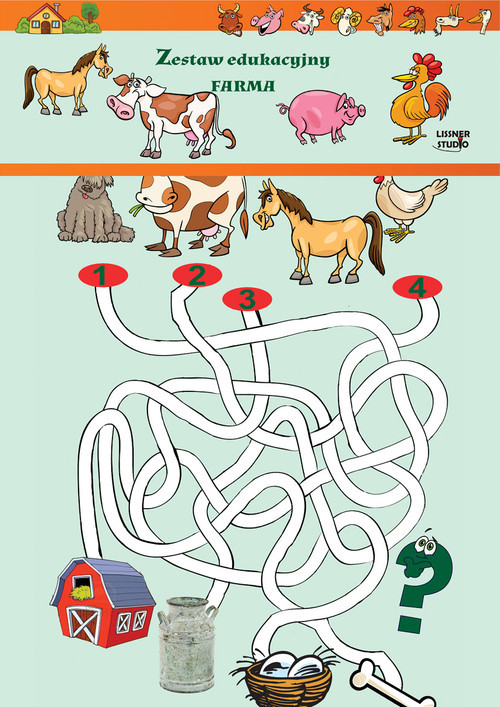 Zestaw edukacyjny dla najmłodszych. 11 plansz formatu 32x45 cm: a/ 2 kolorowe plansze ze zwierzakami b/ 6 plansz do kolorowania c/ 1 łamigłówka-labirynt d/ 2 krzyżówki obrazkowe prečítať celé