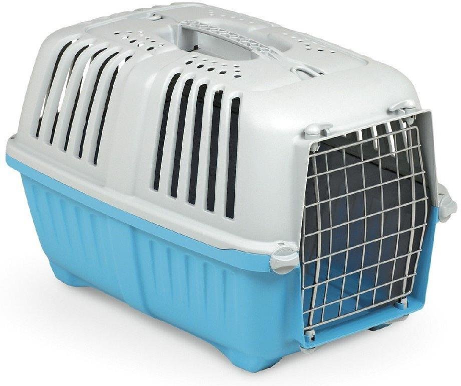 Odlehčená plastová přepravka. Kovová dvířka. Určeno pro malé psy a kočky. Váží pouhých 0,9 kg, snadno tedy Vašeho mazlíka donesete, kam potřebujete. Vyniká zajímavým designem, s praktickými úchyty na pás k nošení přes rameno. Rukojeť je přímou součástí vrchního dílu. Barva modrá. Rozměry: 48 x 31,5 x 33 cm