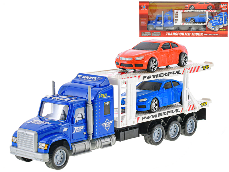 Auto přepravní 36cm na setrvačník se 2 auty 14cm na volný chod v krabičce