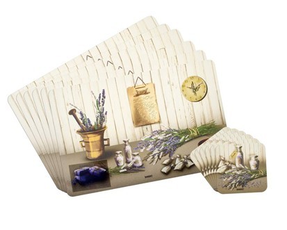 Táto 12-dielna sada obsahuje 6 prestieraní o rozmeroch 43 x 28 cm a 6 menších prestieraní 10 x 10 cm, ktoré môžete využiť napríklad ako podložky pod poháre. Prestierania sú vyrobené z kvalitného plastu (PP) s hrúbkou 0,4 mm, čo zabezpečuje ich pevnosť a dlhú životnosť. Dekor s jemnou levanduľou vnukne do vášho domova príjemnú atmosféru a farby, ktoré ladia takmer s každým interiérom.