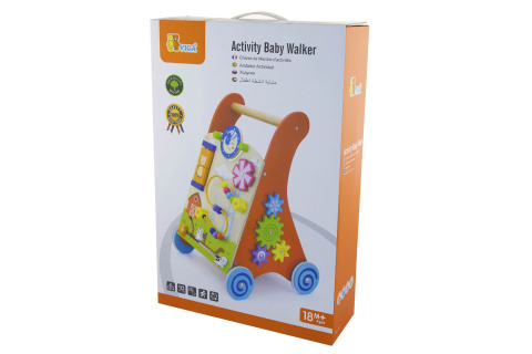 Dřevěné chodítko s herními prvky pro rozvíjení dětské chůze a motoriky. Rozměry cca 34 x 45,5 x 32 cm. Obsahuje různé provlékačky, bludiště a otáčecí hračky. Rozměry balení cca 31 x 47 x 11 cm. Věk 18m+ prečítať celé