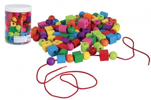 Dřevěné maxiperle různých tvarů se šňůrkou na navlékání v plastové dóze. Výrobek splňuje požadavky EU na bezpečnost hraček a je vhodný pro děti od 3 let. Rozměry výrobku 10 x 14 x 10 cm. prečítať celé