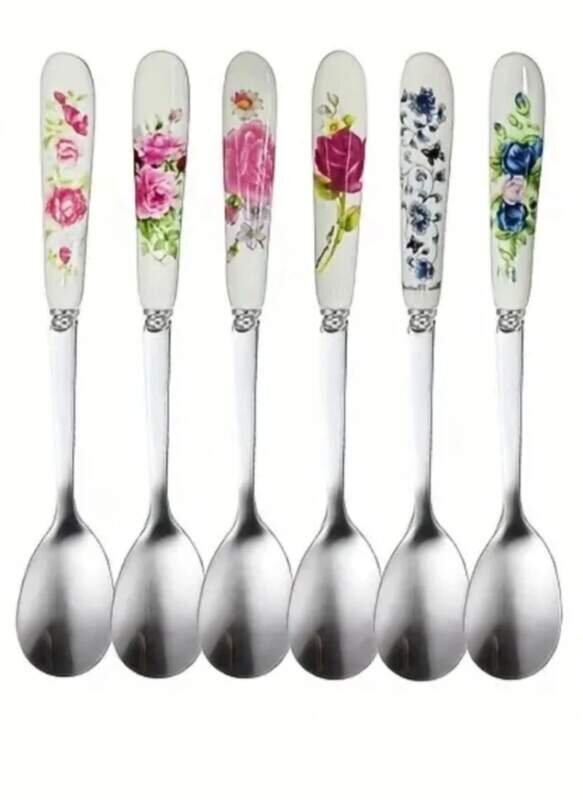 Sada 6 lžíc z nerezové oceli se vzorem kytek v bílé/růžové/zelené/modré barvě. Lžíce mají jemně zdobenou keramickou rukojeť a jsou vhodné do myčky na nádobí.Květiny mají společný půvab, líbeznost, rafinovanost a výrazná dekorativní funkce, která dokáže zkrášlit jakýkoli kontext. Sada 6 lžiček...